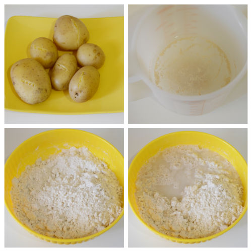 Lessare le patate e farle raffreddare, quindi sbucciarle e passarle nello schiacciapatate raccogliendole in una grossa ciotola,