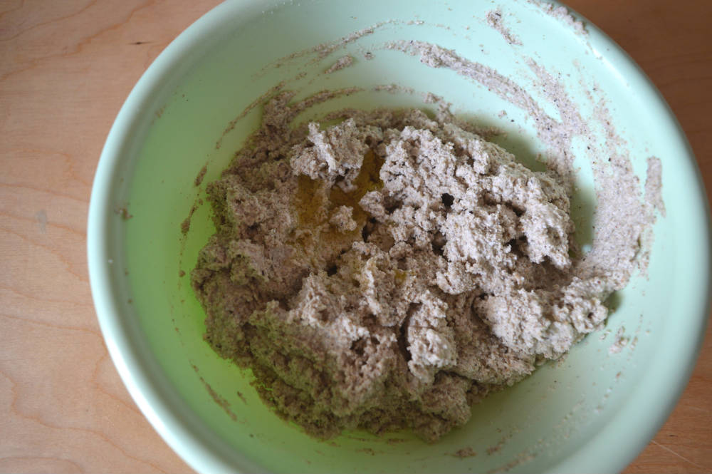 aggiungere l’acqua alla farine ed iniziare ad impastare, quindi versare l’olio
