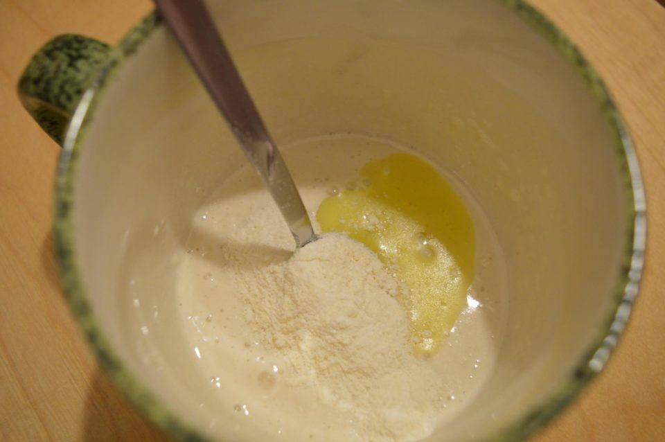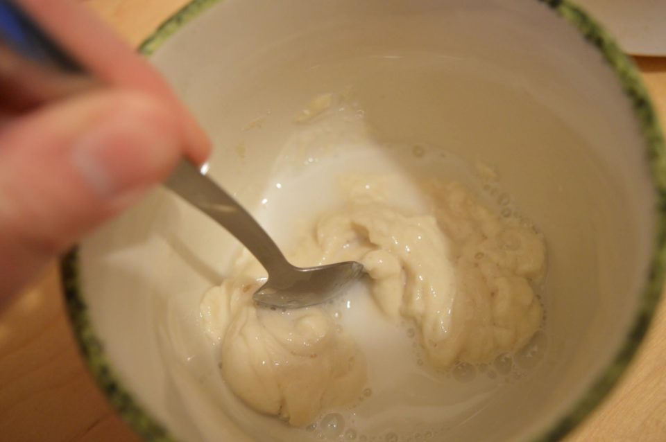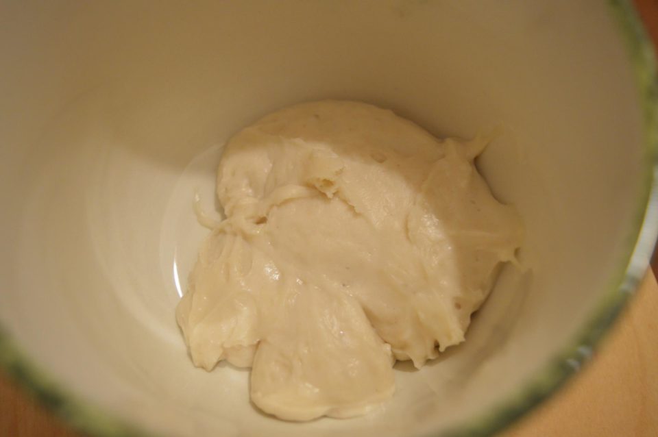 Mettere l’esubero di pasta madre in una terrina e scioglierlo nell’acqua