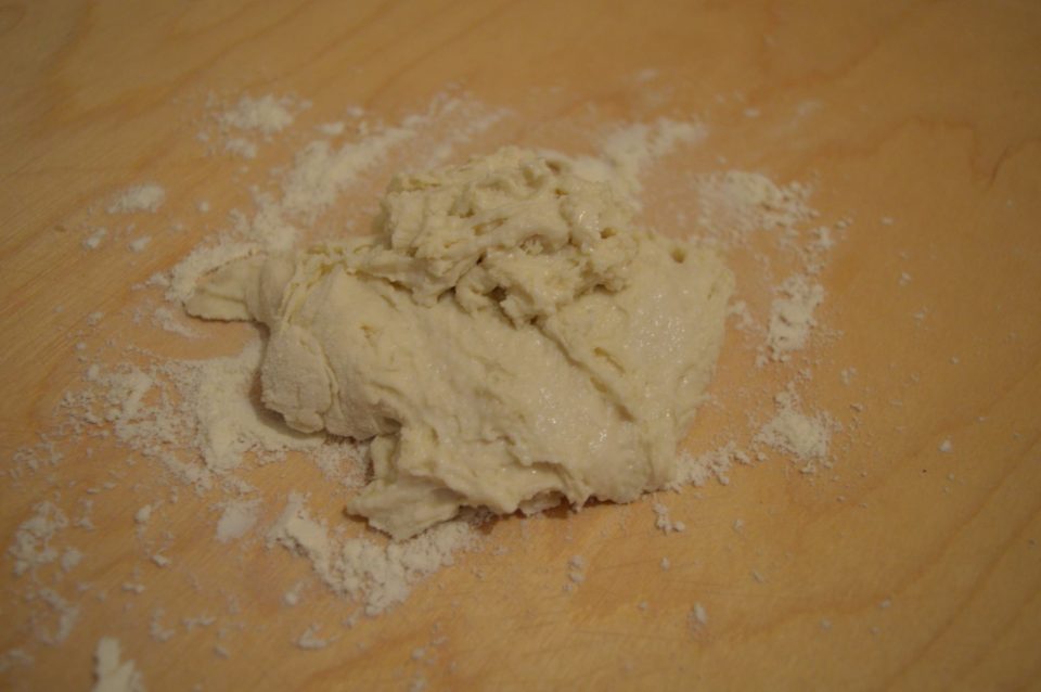 quindi trasferire il composto su una spianatoia, unirvi il restante delle farine ed impastare
