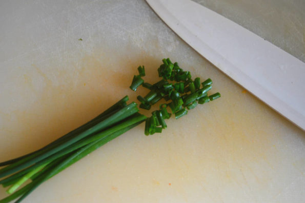 lavare l’erba cipollina ed affettarla in piccoli pezzi