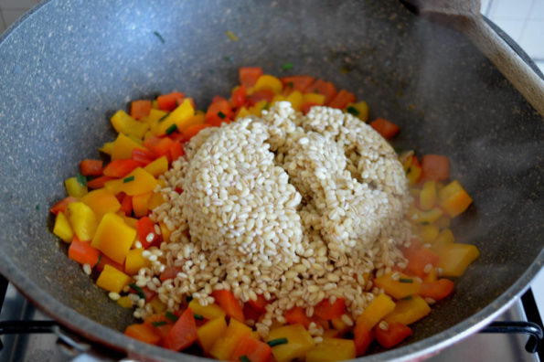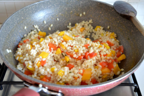 Procedimento per l’orzo perlato con peperoni e stracchino: