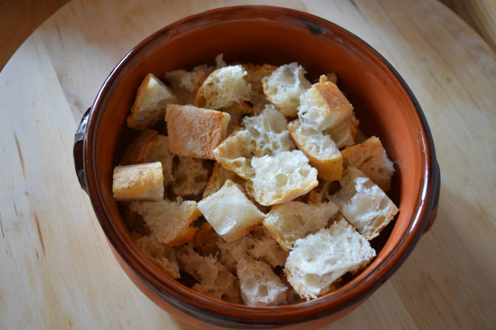 tagliare il pane in piccoli cubetti
