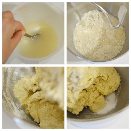 versare l’acqua con il lievito e il mascarpone ed iniziare ad impastare,