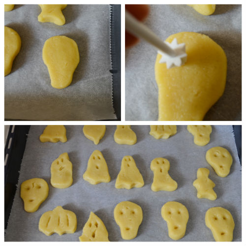 - sagomandole con le mani, formare dei fantasmini, delle zucche o dei teschi, si abbia però cura di non diminuire il loro spessore,