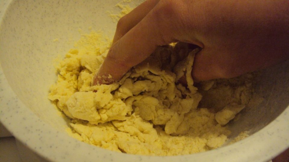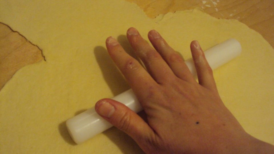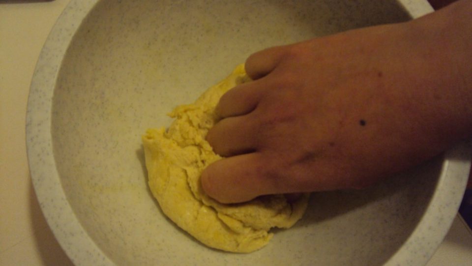 ottenendo quindi un panetto abbastanza elastico, trasferirlo su una spianatoia e spianarlo con un mattarello