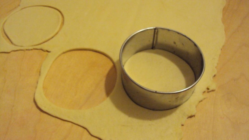 con un coppapasta o in alternativa una tazza da colazione, ricavare dei dischi