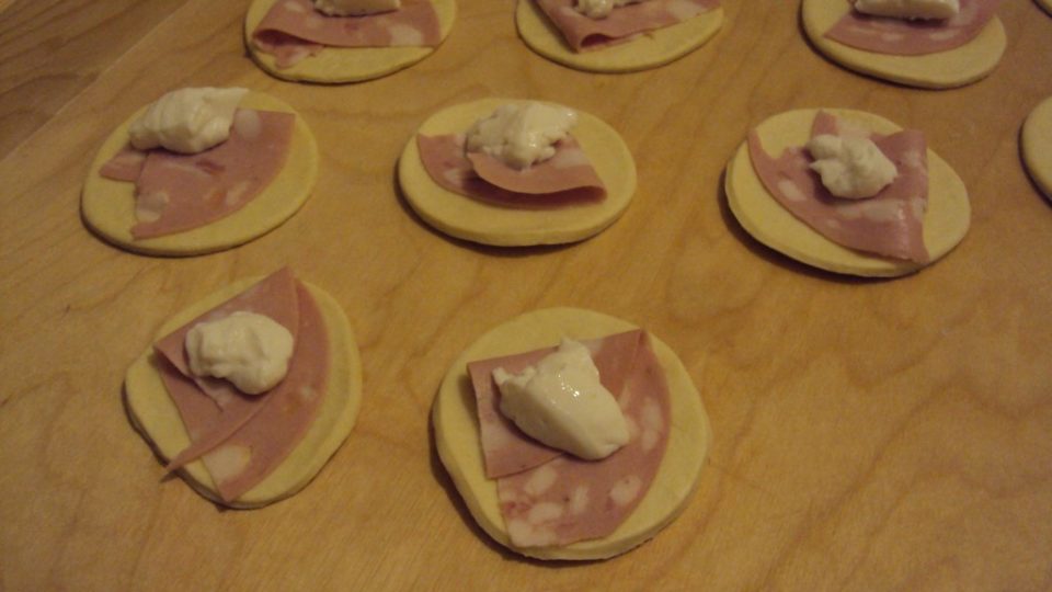 farcire ogni disco con la mortadella e lo stracchino