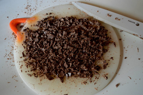 tagliare finemente il restante cioccolato ed aggiungerlo alla crema appena preparata