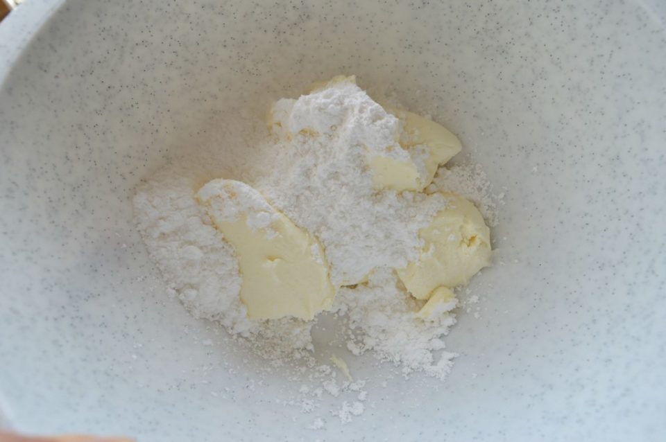 Pesare il mascarpone, metterlo in una ciotola e aggiungere anche lo zucchero a velo
