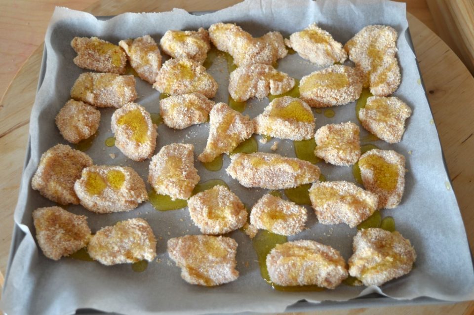 Da tempo pensavo di farle in casa ma non volevo però l’effetto delle classiche fettine impanate e fritte, la croccantezza dei nuggets è tutt’altra cosa.