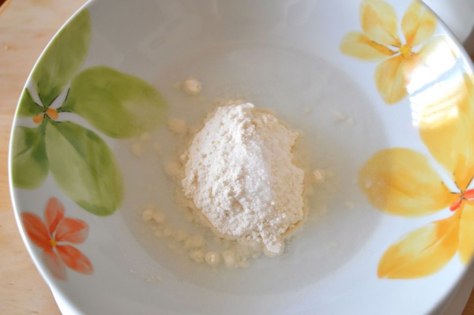 Mettere in una terrina il pan grattato e unire in un’altra ciotola l’acqua, la farina e il sale