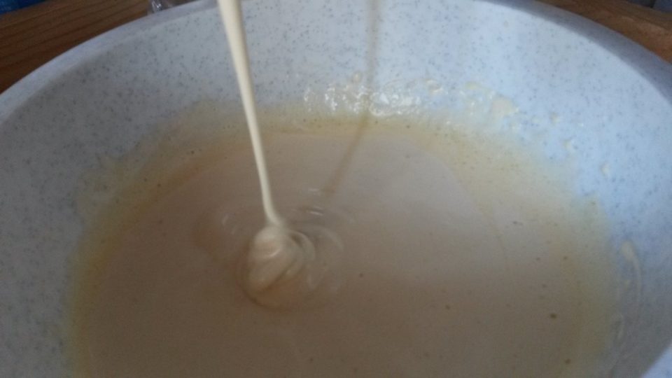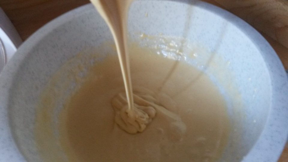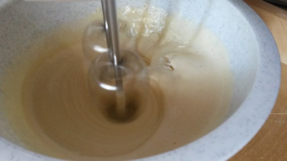 continuare a montare finche l’impasto non scenderà dalle fruste senza spezzarsi