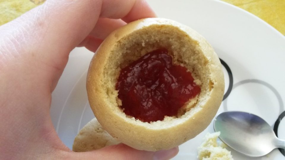 farcirle con la confettura quindi riposizionare la calotta e spennellarle con la confettura