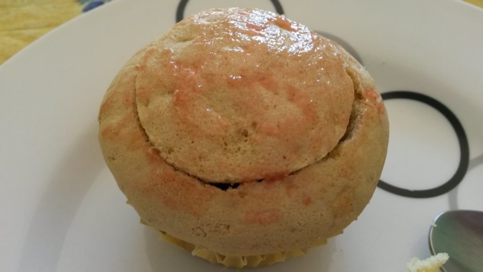 e posizionarlo sulla parte superiore del cupcake facendolo aderire alla confettura