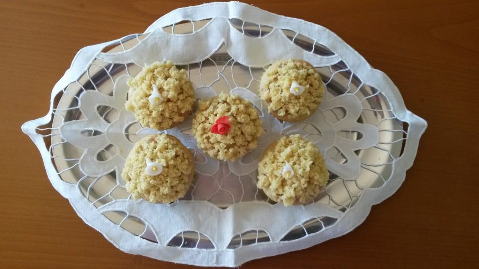 Sono delle mini tortine farcite con confettura di fragole e decorate con lo stesso pan di spagna sbriciolato, proprio come la classica torta mimosa.