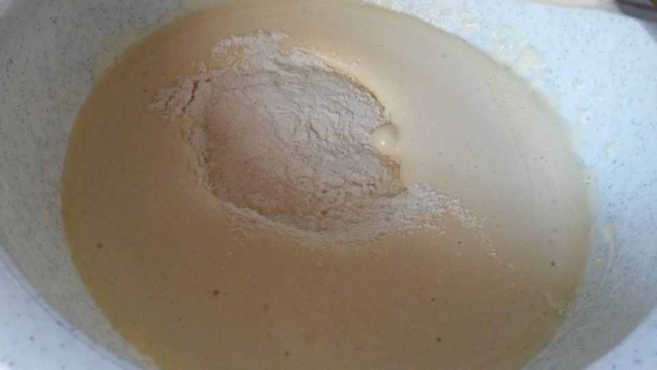 aggiungere ora la farina mescolata in precedenza con il lievito e la cannella