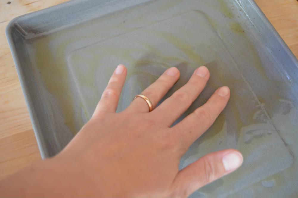 e trasferire al suo interno l’impasto della focaccia morbida con esubero, coprire con la pellicola alimentare