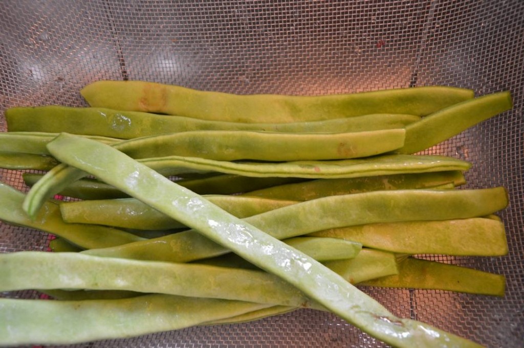 Sciacquare le taccole sotto l’acqua corrente e recidere l’estremità con un coltello