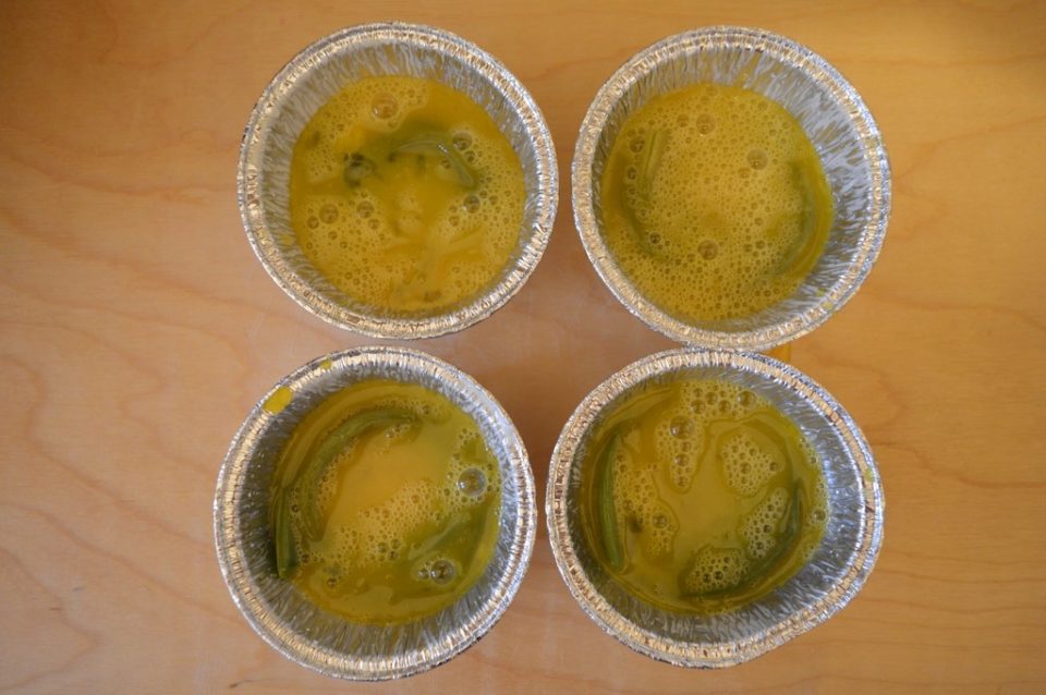 versare le uova all’interno dei pirottini riempendoli per metà della loro capacità