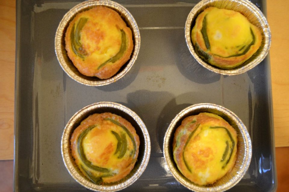 Lasciar raffreddare per qualche minuto e togliere le frittatine di taccole dagli stampini, quindi impiattare