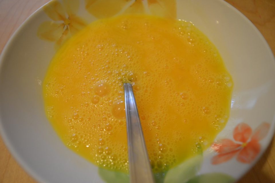sgusciare le uova e sbatterle in un terrina con un pizzico di sale