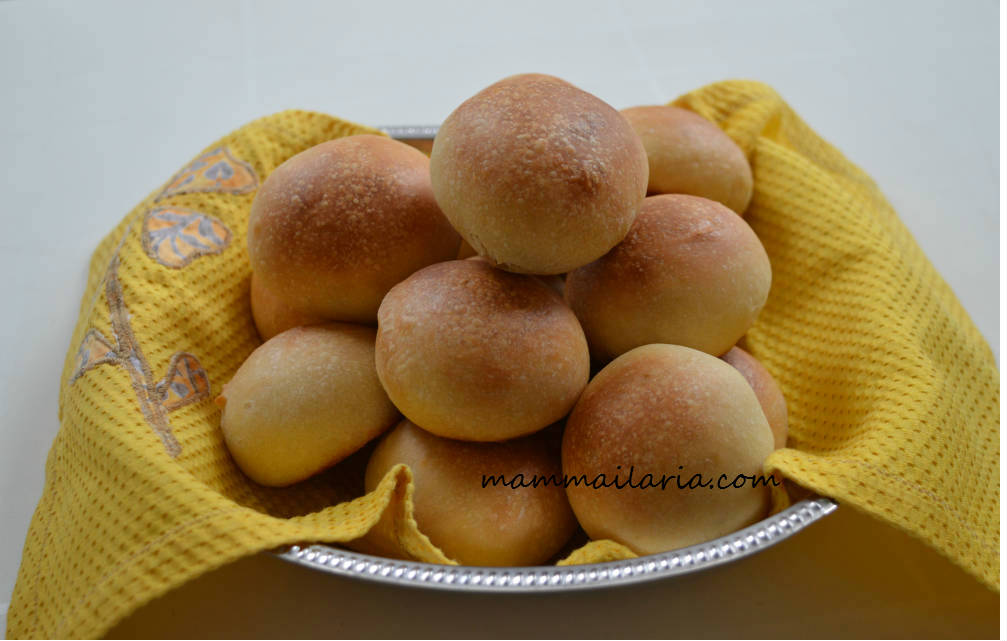 Questi sono i classici panini da buffet e possono essere farciti sia con alimenti dolci che salati, quindi sono una base neutra che si sposa benissimo ad esempio sia con i pomodori che con la marmellata.