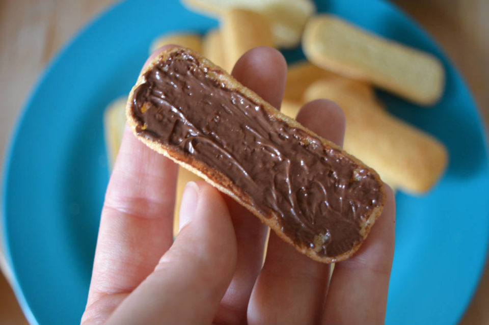 farcire un biscotto con la crema di nocciole, quindi accoppiarlo con un altro biscotto