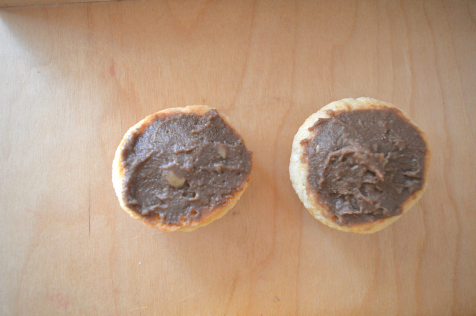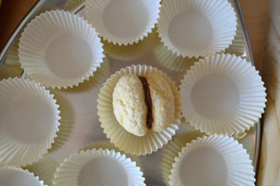 Sistemare i pirottini di carta su un vassoio e farcire internamente i due gusci con la crema