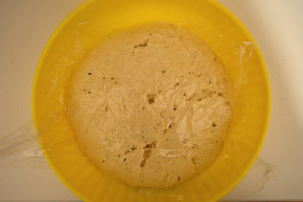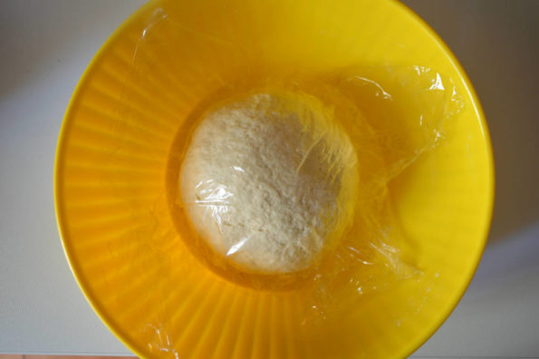 quindi formare una palla e lasciarla nella ciotola, coprirla con la pellicola alimentare e farla lievitare fino al suo raddoppio