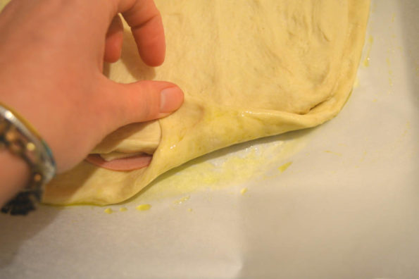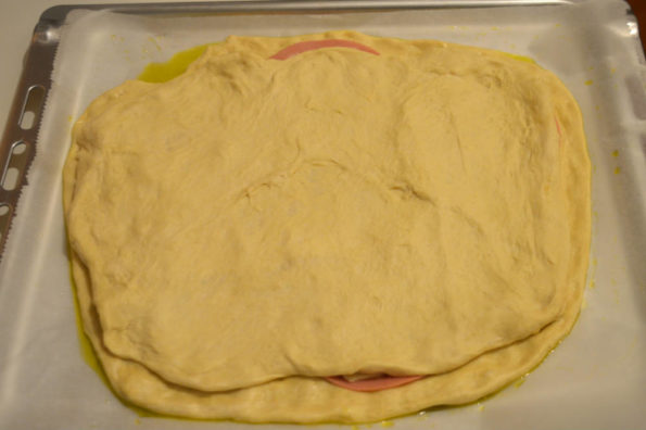 spinare con le mani anche il restante impasto e con questo coprire la farcitura