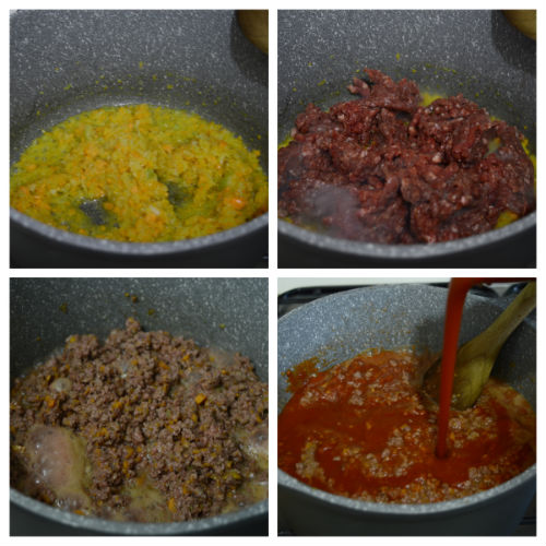 - mettere il trito appena preparato in una pentola capiente con un po’ d’olio e far dorare