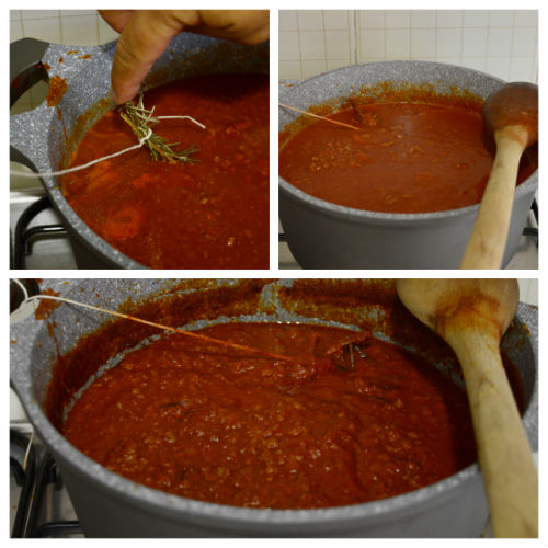 - Cuocere a fuoco basso, mescolando ogni tanto, per circa tre ore,