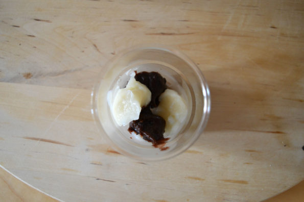 Durante la preparazione del bicchiere vaniglia e cioccolato mi ronzava intorno con un’aria di vittoria, poi quando ha visto che iniziavo a formarlo si è dovuta ricredere.