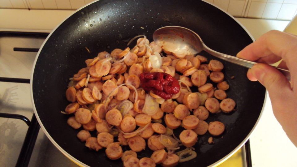 In dieci minuti ho servito in tavola i miei spaghetti e wurstel.
