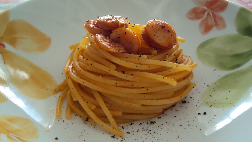 In dieci minuti ho servito in tavola i miei spaghetti e wurstel.